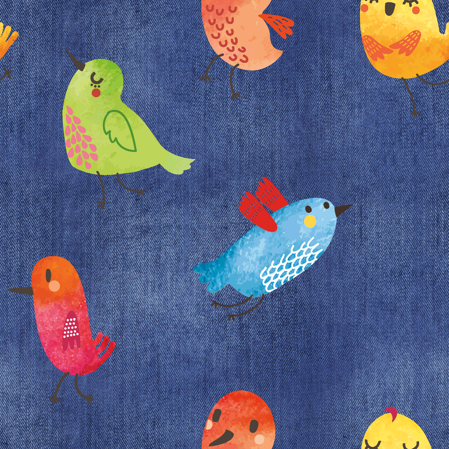 Jersey Vögel auf Jeans, dunkel