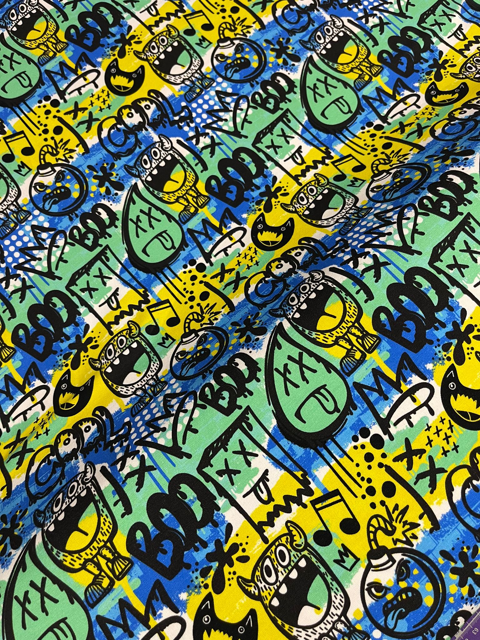 Die Stoffe werden im Digitaldruckverfahren bedruckt, daher kann es zu kleinen Farbpunkten auf dem Stoff kommen, was in diesem Fall keinen Mangel darstellt.